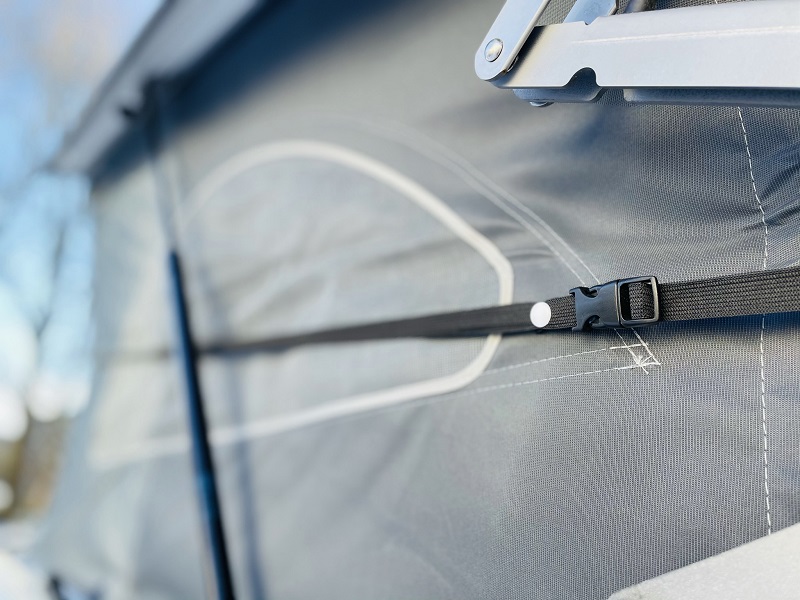 Dieses praktische Gummiband zieht den Faltenbalg beim Schließen des Hubdaches zusammen.