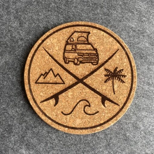 Der Korkuntersetzer schützt den Tisch oder die Arbeitsflächen im California / Van.